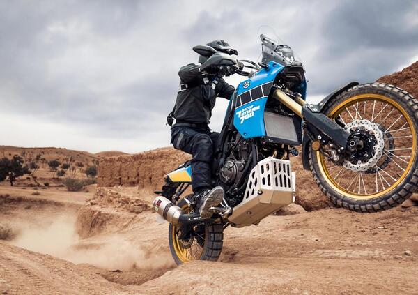 Alla livrea si aggiungono alcune migliorie tecniche che aumentano la capacità touring e off-road della Ténéré 700. C'è infatti la piastra paramotore in acciaio da 4 mm di spessore, con attacco per la scatola attrezzi, integrata dalla protezione radiatore e dal paracatena tagliato al laser. La sella rally alza la seduta di 20 mm portandola a 895, facilitando il passaggio alla guida in piedi, con l'aiuto dei tamponi antiscivolo sul serbatoio di serie e delle manopole specifiche per l'uso in fuoristrada.