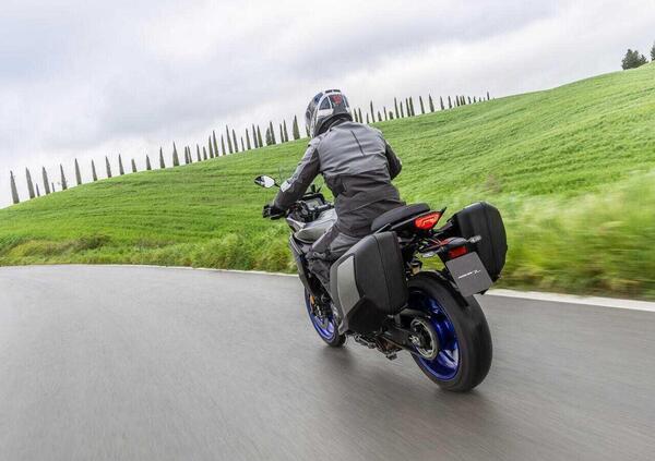 Il retrotreno, con il monoammortizzatore regolabile in precarico, completa un'architettura ciclistica che privilegia il comfort nei lunghi viaggi senza sacrificare l'agilità nelle situazioni più dinamiche. L'impianto frenante, con doppio disco da 298mm all'anteriore pinzati da pinze radiali e disco singolo da 245mm al posteriore, completa il pacchetto.
