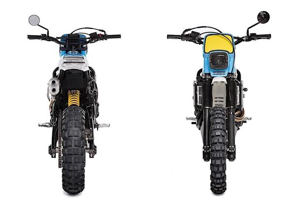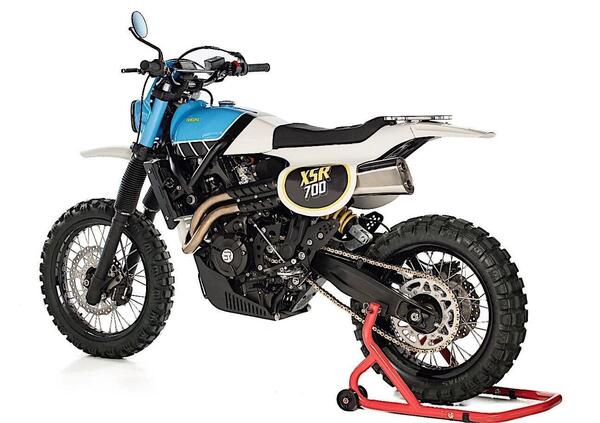 "Ero certo che la moto doveva essere molto più magra e alta - prosegue Capelo -. Per quanto riguarda il colore, essendo una Yamaha con un look vintage off road, è stato facile arrivare allo speed block Yamaha racing in giallo, biancho e nero; ma poi è stata scelta un'opzione di colore diversa e ispirata alla Yamaha TT in celeste, nero e giallo per poi usare la fascia nera dei blocchi sul serbatoio fondendosi con il telaio originale XSR. Prendendo spunto da Yamaha iconiche è stato deciso di chiamare la moto XSR700 TT, nel senso di True Tribute".