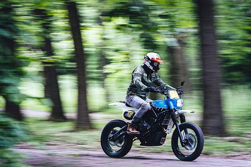 Il gruppo serbatoio, base sella e fiancatine è stato realizzato in lamiera di alluminio e inoltre sono stati montati: piastra paramotore, strumento Acewll, manubrio fuoristrada e comandi al manubrio minimal, acceleratore a doppio cavo, pedane e leve off road.