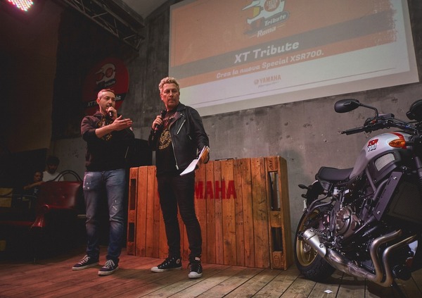 Yamaha ha quindi chiamato ad una sfida i bike builder romani invitandoli ad elaborare un progetto grafico per creare una moto special su base XSR700, con lo scopo dichiarato di far rivivere lo stile unico degli anni ’80. E, così, forse per chiarire le idee anche ai più distratti, ha piazzato al centro della sala una XT500 - tra le poche moto che non è sbagliato definire icone ,- il cui serbatoio cromato resta una delle soluzioni più originali e capaci, nella loro bellezza, di resistere all'incedere degli anni.