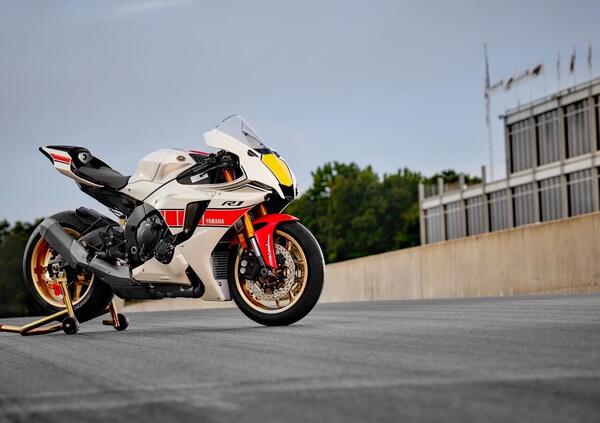 Era il 1961 quando Yamaha decise di impegnarsi nei Gran Premi - esattamente sessant'anni fa. Una ricorrenza non banale, che a Iwata hanno pensato bene di festeggiare con una livrea speciale sulle proprie sportive 2022, ovvero YZF-R1, la nuova YZF-R7, YZF-R3 e YZF-R125. Manca la YZF-R6, che nel 2021 ha perso l'omologazione stradale ed è destinata al solo uso in circuito.