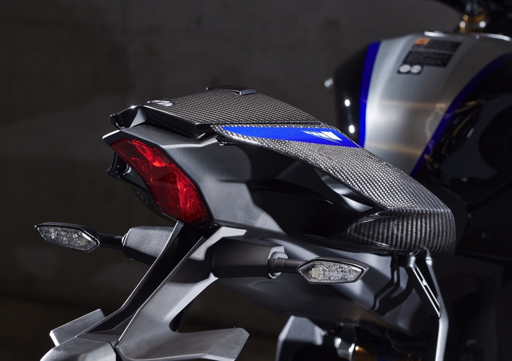 La nuova R1 2020 cambia anche nell’estetica, con una nuova carenatura che si avvicina alla M1 MotoGP, con presa d’aria centrale di diverso disegno e plexiglass più corsaiolo, che migliorano del 5% l’efficacia aerodinamica. Diversa anche la accordatura della carenatura al serbatoio, e più efficaci i fari LED posti sotto la carenatura che avevano debuttato sulla versione 2015. Sulla YZF-R1M cambia anche il codino, con una nuova unità in fibra di carbonio che valorizza l’estetica e alleggerisce le sovrastrutture.