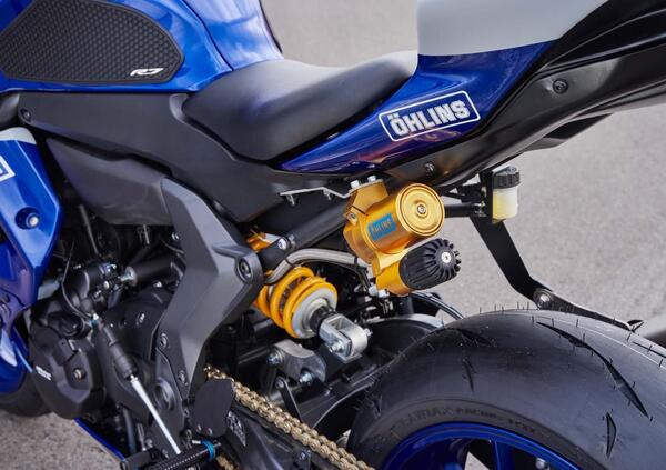 Il tassello mancante ce lo mette Yamaha stessa attraverso un kit GYTR (Genuine Yamaha Technology Racing) che aggiorna il comparto sospensioni, con monoammortizzatore e cartucce forcella Öhlins, scarico completo Akrapovic, naturalmente centralina dedicata con cablaggio racing (che elimina la chiave di contatto sostituendola con un pulsante) e carenatura ovviamente priva di tutte le aperture per fari e lampeggiatori (che apparentemente chiude anche la presa d'aria centrale) semimanubri sotto la piastra forcella, pedane fisse, protezioni freno e carter motore.