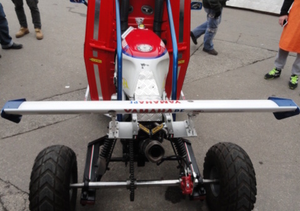 Iniziamo dal più impressionante, la YamahApe: sembra il frutto di un tamponamento fra (appunto) un'Ape e una Yamaha R6 quando invece è il figlio di una notte d'amore fra i due. Il proprietario - un cliente di MotoNova - ha semplicemente smontato la parte ciclistica di una supersportiva Yamaha e l'ha montata sulla parte anteriore di un'Ape, dopo averne ovviamente rinforzato il telaio. Le ruote posteriori, di provenienza Quad, le ha messe MotoNova, e il risultato è il mezzo che vedete.