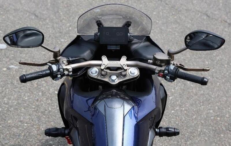 La strumentazione è formata da un display TRT da 5 pollici, e poi abbiamo comandi elettrici retroilluminati, il vetro del cupolino regolabile elettricamente in altezza, l'apertura elettrica del tappo carburante e della sella, l'avviamento keyless e due vani portaoggetti all'interno del cupolino.
