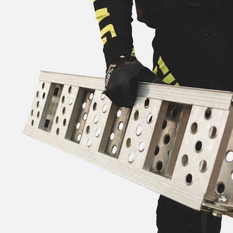La solida e leggera struttura in alluminio rende questa rampa pieghevole di Proworks facile da usare e da trasportare. Potrai caricare la moto su un furgone o un rimorchio in pochi minuti. È disponibile in diversi colori per poterla abbinare alla tua moto.
