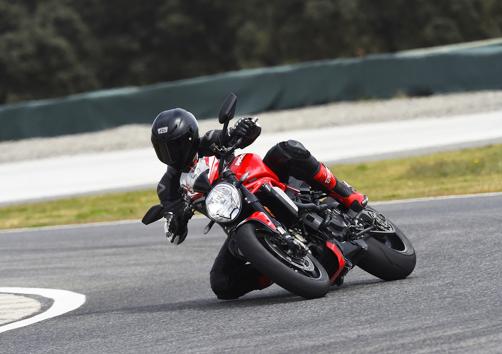 Morbida e piacevole andando a spasso, la Monster 1200 R cambia personalità su richiesta del pilota, che può togliersi fior di soddisfazioni anche in pista, un posto che forse non si addice, ma che di certo non disdegna. Anche senza le scarpette in mescola, la Monster 1200 R in questo contesto riesce a esprimere il meglio di se, permettendo a chi gli sta in sella di godere di tutti quanti i 160 cv del suo motore e di apprezzare pienamente la coppia del bicilindrico, che dopo la cura ricostituente guadagna oltre ai 15 cv e il passaggio da Euro 3 a 4, una trattabilità sconosciuta alle versioni di minor potenza. Con quest’ultime si presume che possa condividere la tendenza a scaldare parecchio le gambe del guidatore nell’uso in città (nel contesto del test con tuta e stivali era difficile da percepire), ma per il resto il salto di qualità è ben percepibile, anche dal punto di vista del prezzo purtroppo.