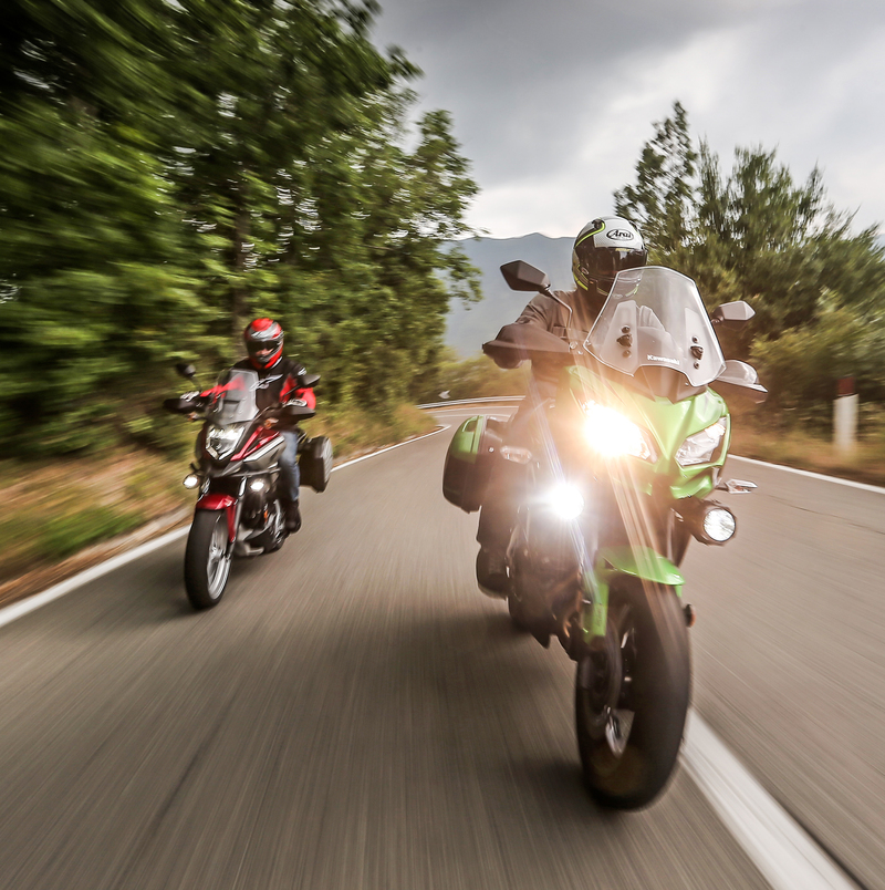 La NC750X è una moto estremamente amichevole sotto ogni punto di vista, dal comportamento stradale, alla risposta del motore e della trasmissione. Per la natura del bicilindrico e le caratteristiche stradali, si è portati a condurla pennellando le curve e usando freno ed acceleratore dolcemente. Mal digerisce la guida nervosa, non è nella sua natura, in compenso offre abitabilità e un confort discreto, almeno fino a quando non ci si trovi ad affrontare asfalti particolarmente sconnessi, situazione in cui emerge una certa difficoltà da parte delle sospensioni a filtrare al meglio. Decisamente meglio la situazione sulle ondulazioni, almeno nella guida da soli, in coppia sarebbe utile poter intervenire sul precario molla del mono, ma la mancanza di un comando remoto, il classico pomello, fa passare la voglia. Il funzionamento del cambio DCT è convincente, sia andando a spasso, dove passa da un rapporto all’altro in maniera dolce, anche in scalata, sia quando gli si richiede una maggiore rapidità e cambi marcia al limite del limitatore. Il motore garantisce buone prestazioni e una scorrevolezza di marcia eccellente, non gli si possono chiedere miracoli, vista la potenza e l’allungo limitato, ma vi ricompenserà con consumi limitati, anzi limitatissimi se si fa un minimo di attenzione. Per una moto che è studiata per accompagnarvi quotidianamente al lavoro e farvi fare qualche bel giro nel fine settimana, sono particolari che fanno la differenza. (F.P.)