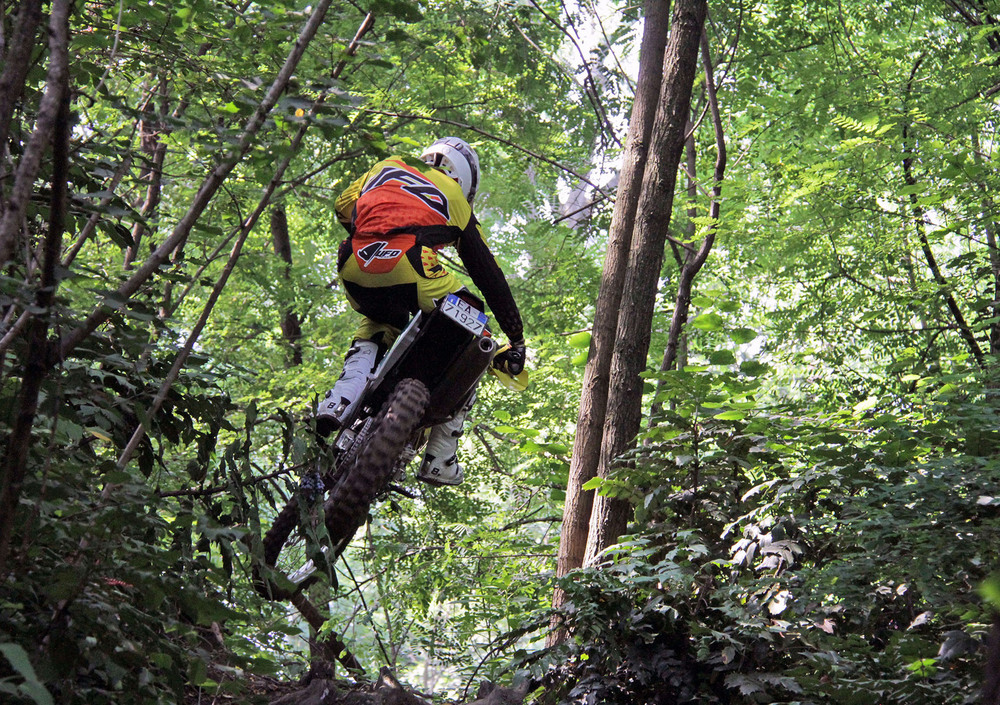 50 Codice: se, per le prime due ho potuto apprezzare la grande attenzione e ricerca nella distribuzione della potenza e nell’equilibrio ciclistico, di questa piccola 50 codice, mi ha senza dubbio soppresso la grande spinta e reattività. La accendi e già da ferma sembra girare come un 125. L’unica differenza all’orecchio è la velocità di ritorno del gas dopo che hai dato la manata. La posizione in sella è da moto vera e non c’è assolutamente nulla a bordo che possa farti intuire di essere a bordo di una moto per ragazzi. Manubrio bello largo, fianchetti stretti e slanciati e sella piatta e filante, offrono a qualsiasi aspirante endurista l’arma vincente per aggredire la gare titolate. Il comparto sospensioni è ben strutturato ed adeguato per le velocità di questa moto, tanto che offre un’ottima stabilità unitamente alla facoltà di effettuare cambi traettoria davvero rapidi.