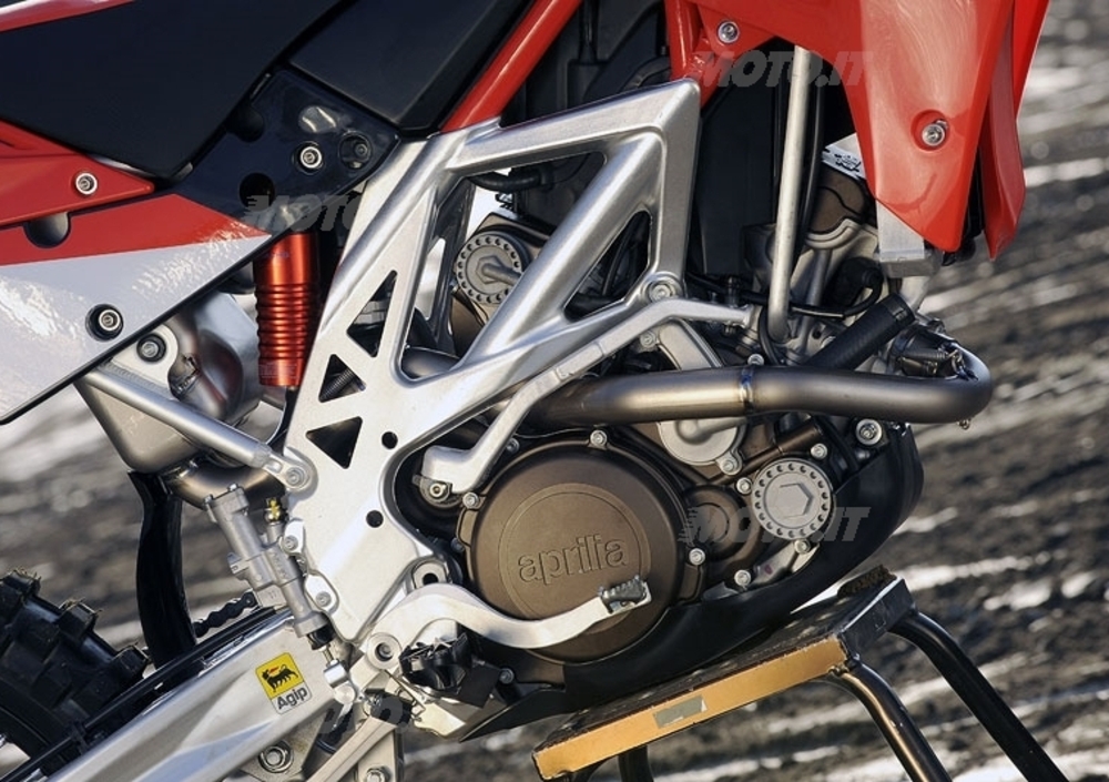 La centralina dispone di due mappature selezionabili con un tasto sul manubrio: full power, da sfruttare per scatenare l’inferno del V2 Aprilia sui fondi che offrono una buona aderenza, e soft, adatta a godere della migliore trazione sui terreni difficili.