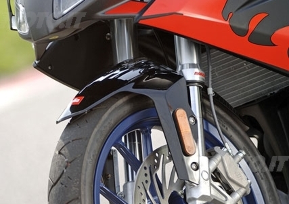 L'impostazione in sella è di ottimo livello: comandi e leve sono tutte in posizioni molto istintive, solo la distanza triangolare tra sella, manubrio e pedane mi ha costretto in una posizione un po’ sacrificata, dovuta alla piega poco accentuata del manubrio (versioni RX e SX). Sul dritto e in strada è ok, ma non appena ci si lancia in una bella piega o nella guida in piedi, è facile che risulti un po’ d’impiccio e basso. Tutt’altra storia per la RS, dove l’avvolgente carena e relativo cupolino ospitano tranquillamente un pilota delle mie dimensioni, ed anche se ci si trova sempre un po’ rannicchiati, in questo caso va tutto a vantaggio dell’aerodinamica e guidabilità.