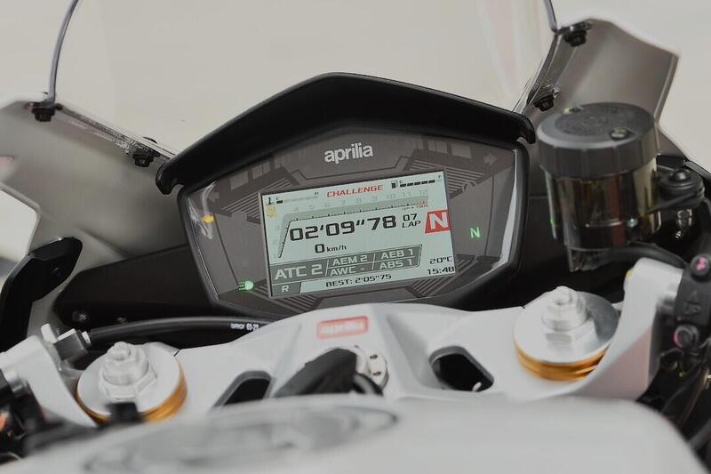 ATC (Aprilia Traction Control); AEM (mappe motore); AWC (Aprilia Wheelie Control (controllo di impennata regolabile); ACC (Aprilia Cruise Control); AQS (Aprilia Quick Shift, il cambio elettronico dotato anche di funzione downshift); AEB (Aprilia Engine Brake, il sistema di controllo regolabile del freno motore). Si può desiderare altro?