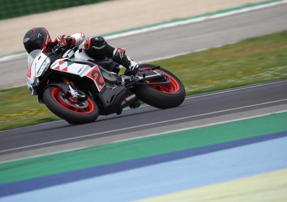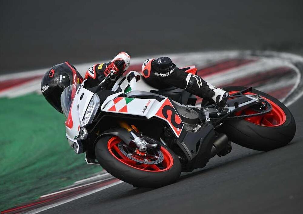 Oggi ci troviamo a Misano in pista, e il concetto di "sportiva dalla vocazione stradale" cambia prospettiva come cambia la RS 660 che ci apprestiamo a guidare. Cambia perché è qui in versione "Extrema", un nome che riporta alla mente la RS 125 Extrema degli anni novanta, quindi con una livrea dedicata e qualche particolare che la distingue dalla RS 660 che già ben conosciamo.