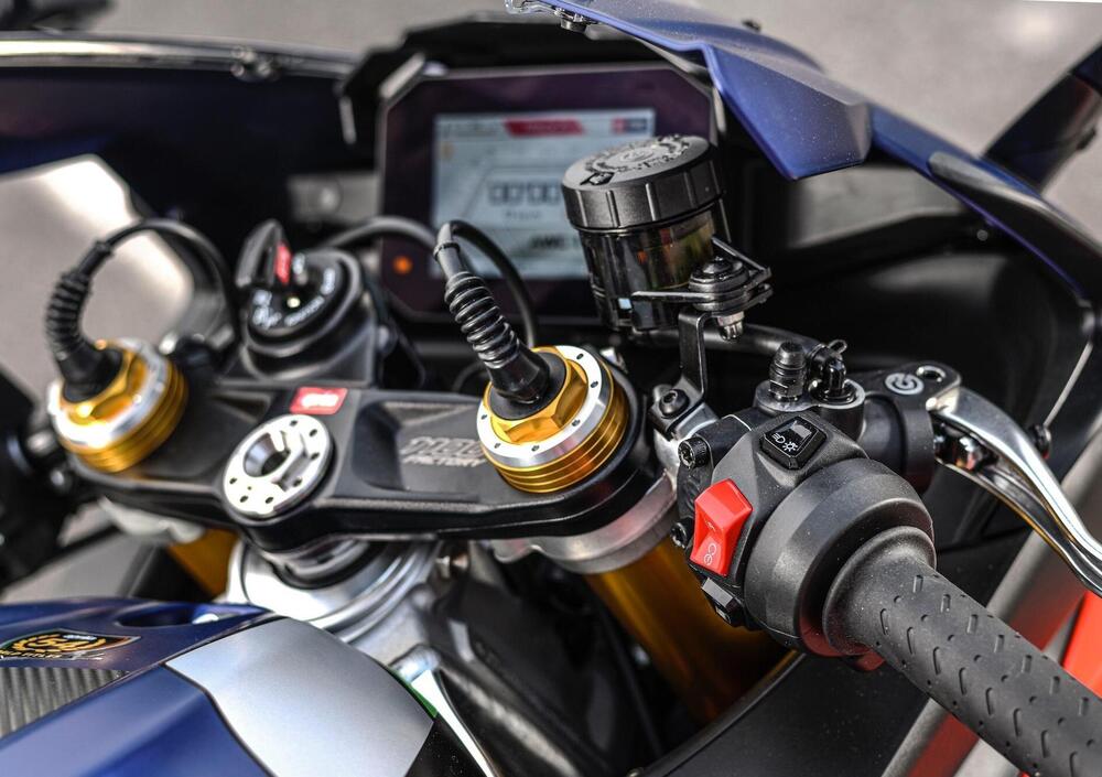 E arriva naturalmente anche una nuova piattaforma inerziale a sei assi più efficace, che si porta in dote un’elettronica di bordo più raffinata e che introduce la gestione del freno motore AEB sensibile all’angolo di piega, nonché un nuovo quickshifter bidirezionale basato su un sensore Hall invece dello switch precedente più efficace e capace di interpretare meglio i comandi del pilota.