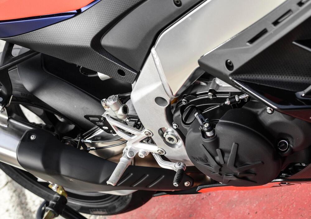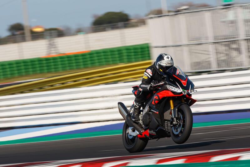 Il tiro “sotto” è eccezionale: si può tranquillamente scendere attorno ai 6.000 giri e uscire comunque di curva come fiondate. Anche perché, una volta… somatizzate le prestazioni dell’Aprilia, ci si rende conto di quanto sia diventata più efficace ma soprattutto accessibile l’elettronica, che sembra quasi avere facoltà predittive soprattutto nel caso del controllo dell’impennata. L’intervento ora è meno “specialistico” rispetto a prima, i controlli agiscono senza quasi far percepire il loro lavoro, e il risultato è una moto su cui andare più forte di prima - a parità di pilota, s’intende - è diventato più sicuro e più facile.