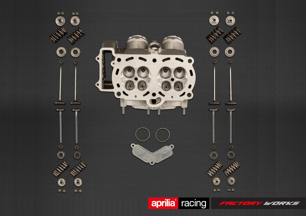 Il kit, come dicevamo in apertura, è destinato ai modelli 2017 e 2018 delle Aprilia RSV4 RR ed RF. I prezzi delle singole componenti sono ancora in via di definizione, ma per darvi un’indicazione i pistoni costano circa 3.500 euro, le teste 5.900, lo scarico Akrapovic 3.500 e le alette 600 in versione grezza, che salgono a 750 se le si desidera verniciate. Naturalmente, sono previsti pacchetti che garantiranno un risparmio sostanzioso. I prezzi definitivi saranno rilasciati fra qualche giorno sul sito Aprilia Racing dedicato al progetto Factory Works.