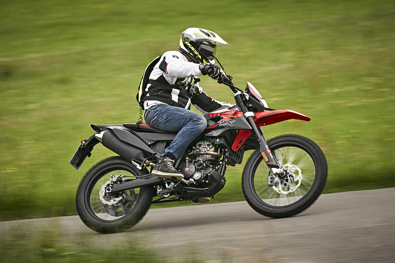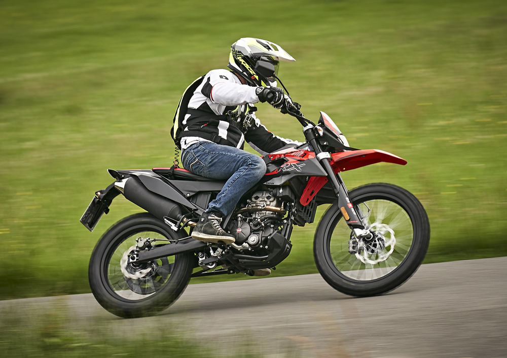 Dal punto di vista tecnico le due ottavo di litro italiane condividono praticamente tutto, telaio, motore e sospensioni sono identici, a fare la differenza sono le ruote, da 17 pollici per la SX da 21 e 18 pollici per la RX, gommate rispettivamente con pneumatici stradali 100/80-17” e 130/70-17” per la motard, 90/90-21 e 120/80-18 la enduro.