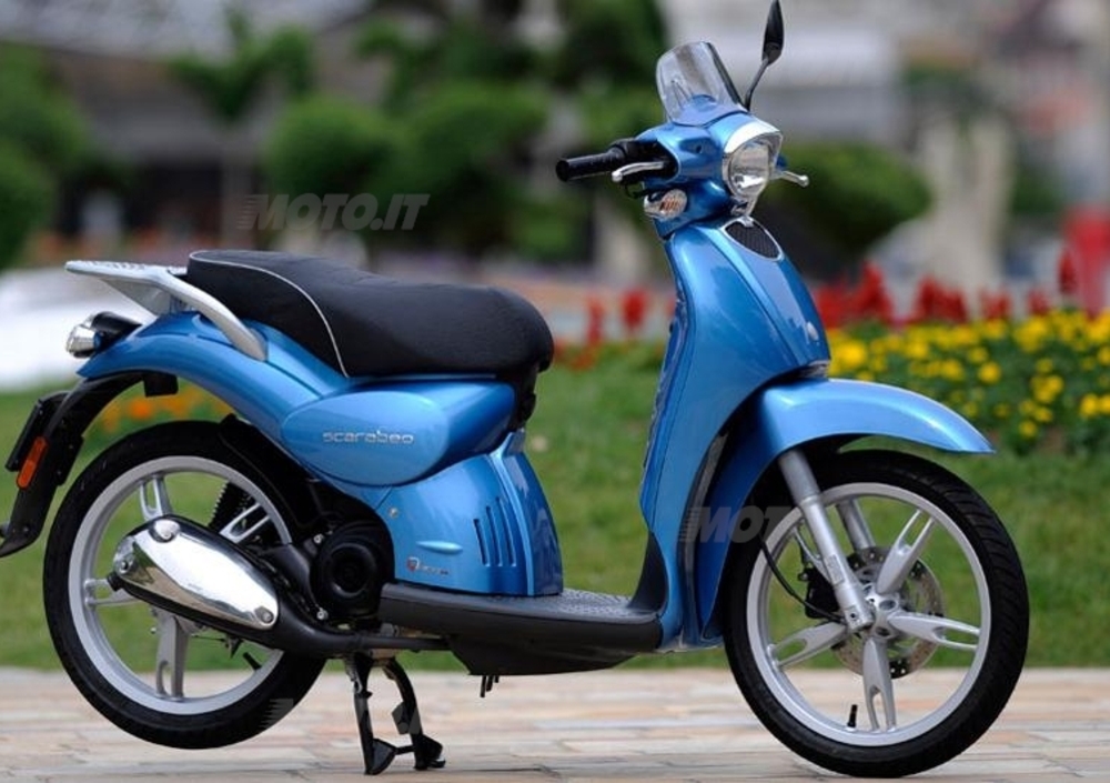 Il nuovo arrivato costa 2.490 euro franco concessionario (esattamente come il 2 valvole), e chiaramente il suo target è sensibilizzare l’utenza più giovane all’utilizzo di un mezzo più ecologico rispetto a uno equivalente con motore a 2 tempi, che comunque rimane in listino per gli ultras inconvincibili, oltretutto a 200 euro in meno. Il piccolo Scarabeo a 4 valvole, in ogni caso, potrebbe essere il mezzo ideale anche per un adulto/adulta cui interessi un veicolo parsimonioso per muoversi solo nell’ambito della città e dintorni: è compatto, leggero, agilissimo e dignitosamente confortevole come sospensioni; ha le ruote alte 16 pollici, con un buon freno a disco anteriore e un dignitoso tamburo posteriore, e non gli manca la pedana piatta, così comoda per posarci la spesa. Sopra il manubrio c’è un elegante spoilerino trasparente, la cui funzione protettiva è chiaramente minima, visto che qui non si viaggia veloci. In ogni caso, il fascinoso scooterino è chiaramente equipaggiabile con una nutrita serie di accessori dedicati all’uso quotidiano ognitempo, a partire dallo specchietto destro (che non si capisce perché mai non ci sia per legge), alle pedane per l’eventuale passeggero, visto che la sella lunga già c’è (ma naturalmente bisogna essere maggiorenni), alla copertina paragambe, che chiaramente è quasi inevitabile abbinare al comodo bauletto e al classico parabrezza alto (ovvero quello che quando si sporca nessuno pulisce mai, e quando lo fa molto spesso lo rovina irrimediabilmente, alla faccia della sicurezza…). Dulcis in fundo, qui è presente anche la pedivella d’avviamento, a dar eventualmente man forte in caso di batteria in panne. La gamma colori dello Scarabeo 50 4Valvole: Bianco Cult, Nero Competition, Azzurro Fiji, Grigio York, Verde Giava.