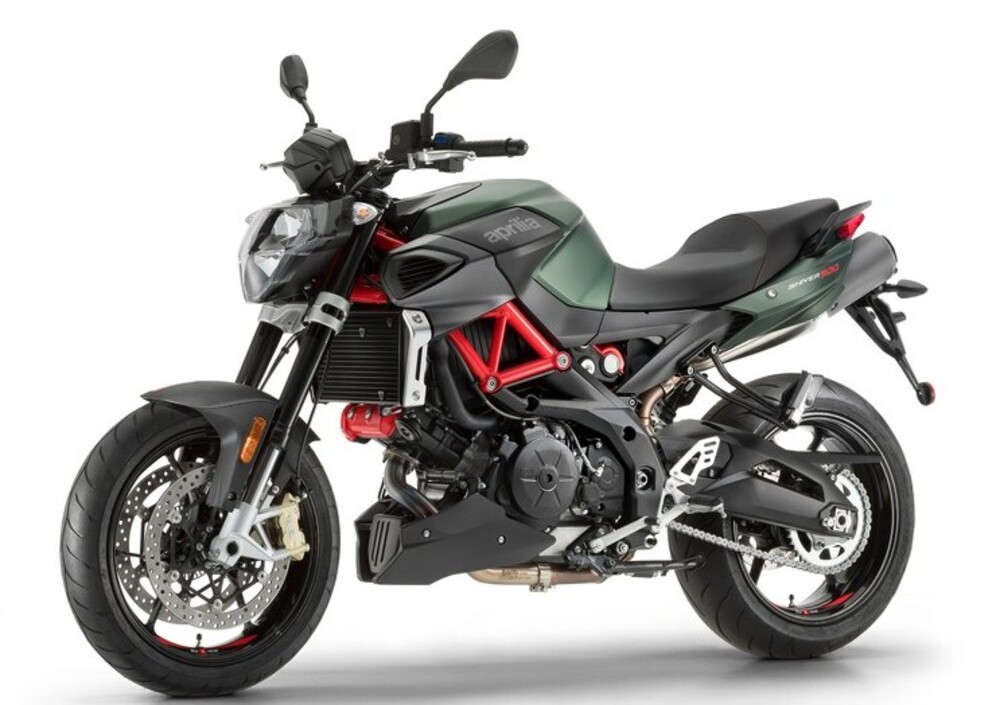 Nuova anche l’estetica della nuda di Noale, che perde le linee spigolose: il faro anteriore, classico da Shiver, è più tondeggiante e le prese d’aria ai lati del serbatoio le donano un look più moderno. Nuovo anche il puntale sotto il motore, che le dona più sportività. Cambia anche il codino, con il doppio silenziatore cilindrico dal design futuristico: infatti, guardando gli scarichi da dietro ci sono due paratie che convogliano l’aria all’esterno per allontanare i gas di scarico dal passeggero. Molto sportivi i dettagli in rosso: telaio in traliccio, coperchio valvole e molla ammortizzatore. “Last but not least”, cerchi in alluminio a tre razze sdoppiate più leggeri di ben 2,3 kg rispetto a quelli del modello precedente.