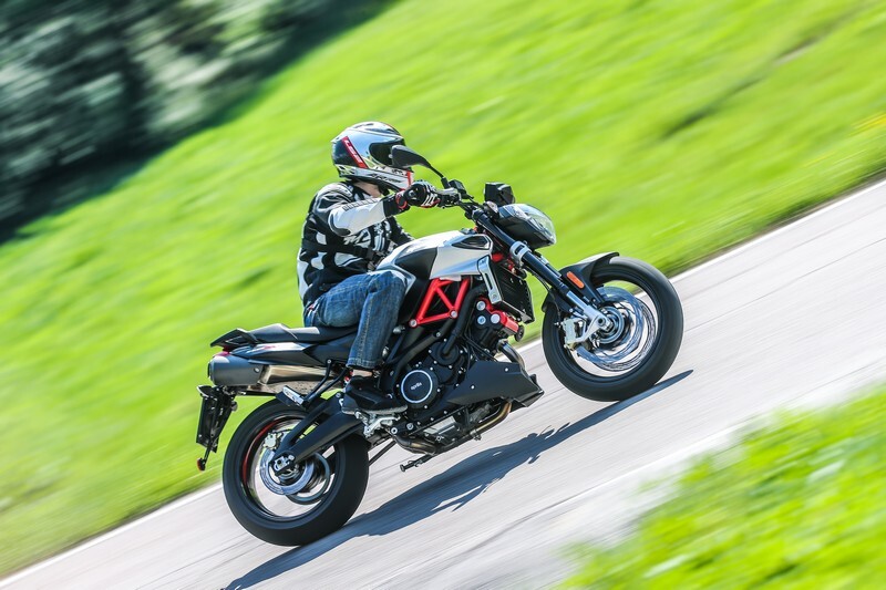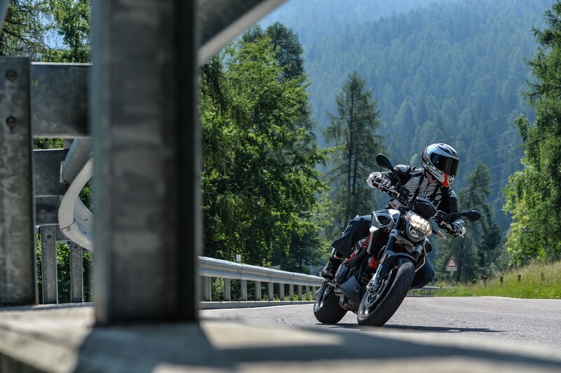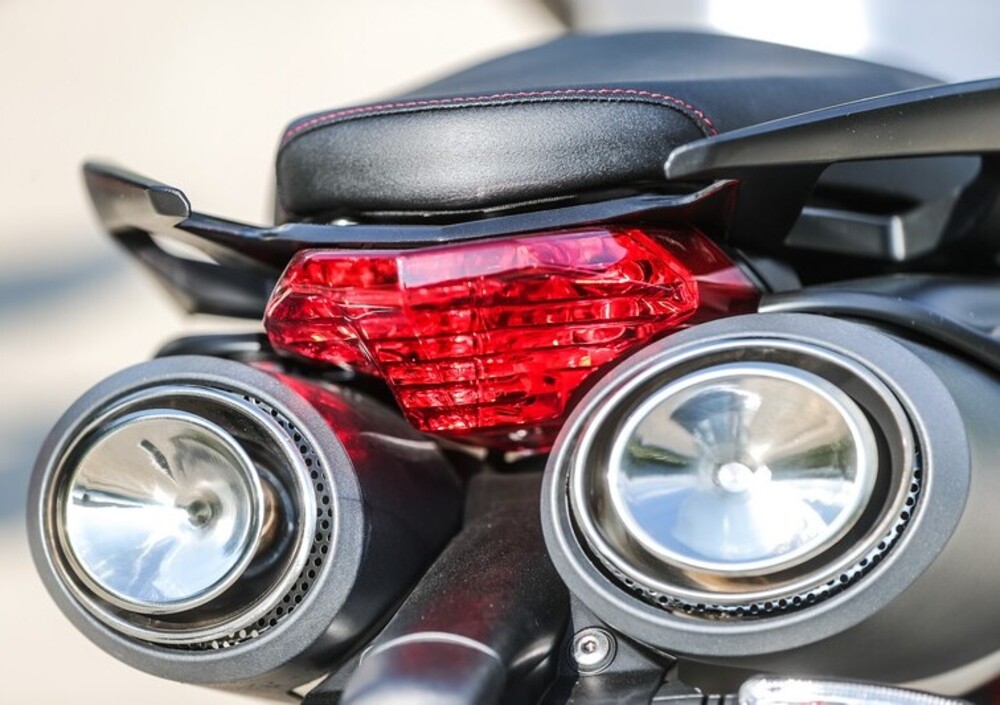 La frenata è molto potente e modulabile, merito del doppio disco da 320 mm con pinze radiali. A fianco dell’impianto frenante c’è l’ABS: all’anteriore interviene solo nelle frenate più estreme, mentre al posteriore è un po’ più invasivo. Fortunatamente, chi si vuole divertire senza aiuti elettronici può disinserirlo e concedersi qualche derapata.