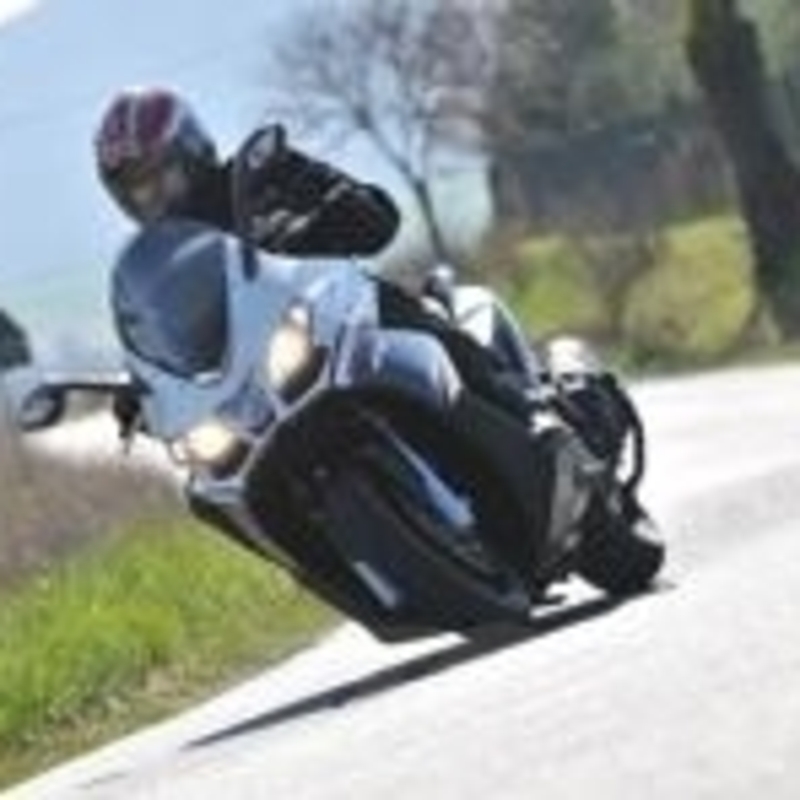 Sulle sospensioni, o meglio, sulla forcella, viene spontaneo arricciare un po’ il naso. Si, perché praticamente tutti i concorrenti (Honda SW-T escluso, e addirittura il fu Malaguti 500 incluso) montano solide forcelle a doppia piastra stile moto, in alcuni casi (Yamaha e BMW) addirittura a steli rovesciati. Logico che per adottare questa soluzione si sarebbe dovuto lavorare parecchio, ma tant’è. L’unità a perno trainato adottata su GP800 ed SRV850, comunque, ha il piantone di sterzo pieno, anziché cavo (ovviamente per ottenere la massima robustezza) e steli da 41 mm, con un’escursione di 122 mm.