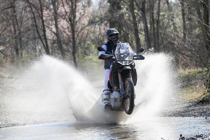 La mappa motore viene ottimizzata espressamente per l'utilizzo in offroad con un brillante tocco del gas. Infine le sospensioni. Aspetto fondamentale per la guida sullo sterrato. L'escurione rimane di 240mm ma vengono introdotte delle molle con coefficiente K lineare e tutte le tarature vengono aggiornate. Inoltre i foderi della forcella anteriore ricevono un bellissimo trattamento superficiale che le conferisce un bel colore oro.