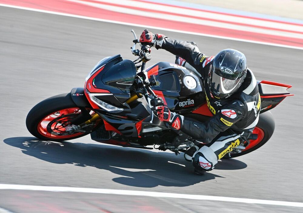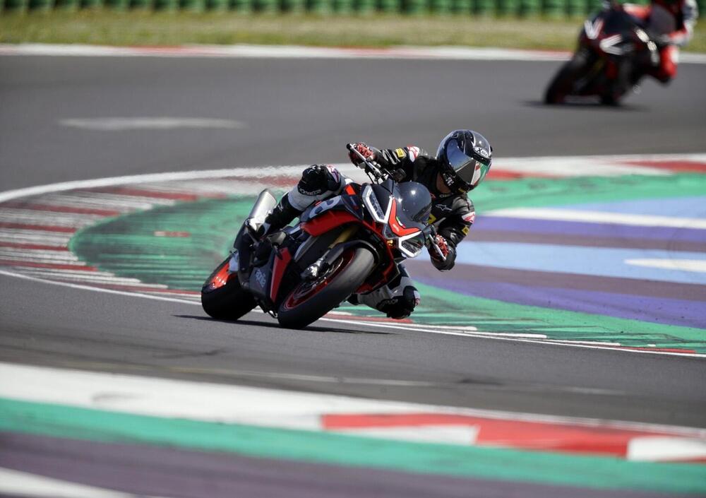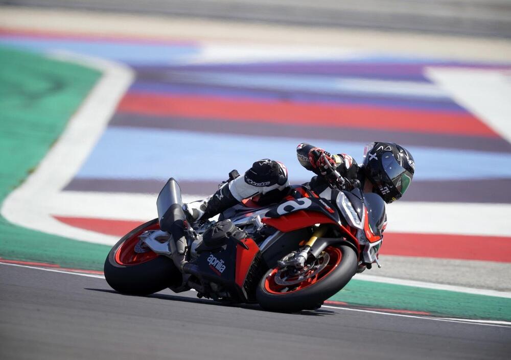 I soli tre turni a disposizione ci hanno impedito di lavorare come avremmo voluto sui vari assetti, e di "pasticciare le varie regolazioni disponibili", ma dall'altra parte ci hanno dimostrato che nonostante questo, la Tuono V4 parte da delle regolazioni standard davvero ottime e che le piccole modifiche che si possono apportare si sentono tutte. Le capacità di adattamento delle semiattive Öhlins è perfettamente accordato a tutto il resto, e lo dimostra il fatto che la Tuono rimanga precisa e rapida sia nel lento, sia sul veloce, dove la semi carena si dimostra molto efficace nella protezione del pilota.