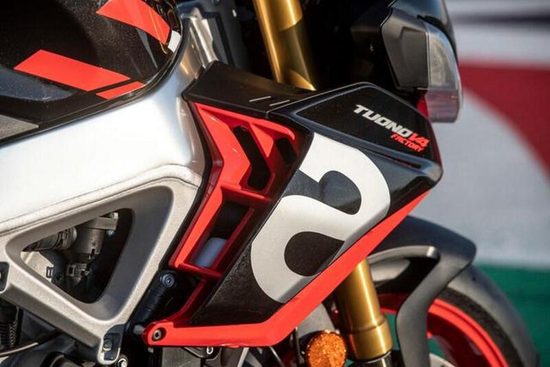 Il colpo d'occhio richiama cerrtamente la sorella 660, anche se qui le dimensioni e soprattutto i muscoli, sono decisamente più pronunciati. Spicca il nuovo frontale con il gruppo ottico a LED e firma luminosa ben riconoscibile. Le luci DRL integrano gli indicatori di direzione, particolare che rende più pulita la vista della semi carena che cartterizza tutte le Tuono. Sempre osservandola da davanti, non sfugge la particolarità della carena a doppio strato, che permette di incanalare l'aria e pulire i flussi che poi andranno a investire le gambe del pilota, oltre che a migliorare il deflusso del calore sprigionato dal motore.