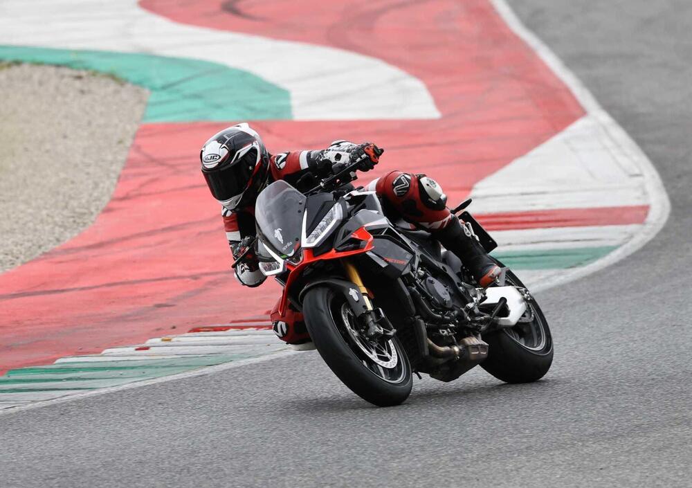 Il motore è straripante. Sul rettilineo principale del Mugello, la Tuono V4 supera facilmente i 270 km/h, dimostrando che la sua autolimitazione elettronica è più una questione di sicurezza che di prestazioni.