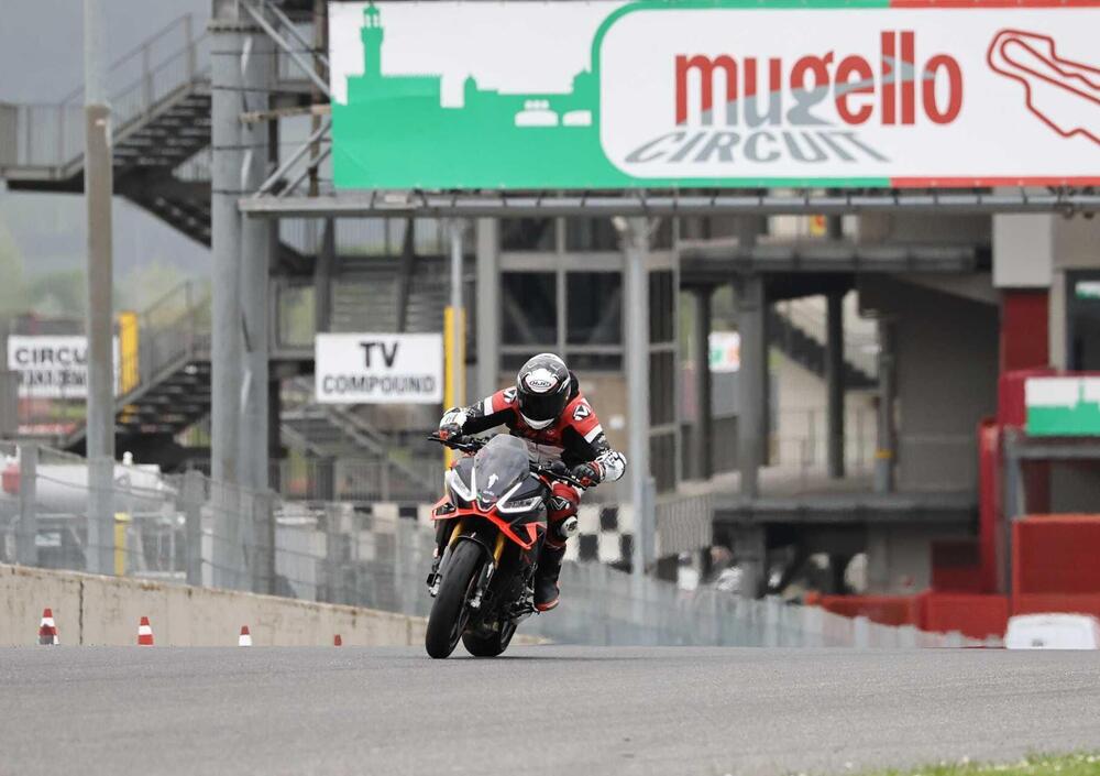 Basta un giro in sella alla nuova Tuono V4 Factory per capire che siamo di fronte a una naked solo nell'aspetto. Il suo DNA da superbike è evidente in ogni accelerazione, in ogni staccata, in ogni inserimento in curva. Sul circuito del Mugello, terreno di caccia ideale per questa hypernaked tutta italiana, la Tuono V4 2025 mostra tutta la sua indole sportiva. Difficile metterla in crisi.