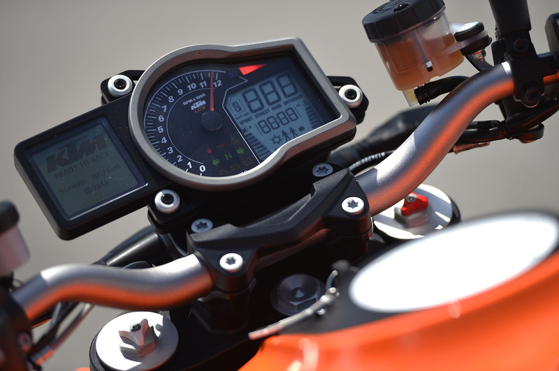 L’austriaca sulle orme delle due contendenti, mette in bella mostra una strumentazione anch’essa mista analogica-digitale, ma per non essere da meno, ha addirittura due display di contorno. Dedicato al contagiri l’indicatore analogico, tutto ciò che riguarda i parametri vitali della 1290 Super Duke R è visualizzato sui due schermi laterali. La leggibilità soffre la luce intensa più che i caratteri lillipuziani, d'altronde se si vogliono avere tante informazioni tutte sott’occhio e in tempo reale, o andiamo in giro con un tablet al posto della strumentazione o ci dobbiamo accontentare.