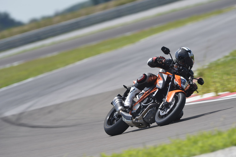 Spostandosi su percorsi extraurbani la naked austriaca oltre a mettere in mostra le doti di ripresa del suo motore, sempre pronto a fiondarvi letteralmente da una curva all'altra, dimostra di avere una ciclistica molto efficace. Pur senza raggiungere gli acuti di Aprilia, che in termini di agilità e precisione non è seconda a nessuno, la Super Duke mette in bella mostra un avantreno preciso e controllato anche nei repentini cambi di direzione. L'elettronica della 1290 è efficace e poco invasiva, fin tanto che si ha una condotta di guida pulita. L'ABS interviene solo sui fondi estremamente viscidi e lo fa in modo controllato e tutt'altro che brusco, mentre il controllo di trazione è perfettibile nella risposta, che in uscita di curva alle basse e medie velocità, tende a dare una risposta telegrafica, poco lineare. Il tutto avviene esclusivamente sugli asfalti più scivolosi, mentre quando il fondo è in buone condizioni, la Kappa ha grip da vendere e mettere in crisi il retrotreno è davvero a portata di pochi.