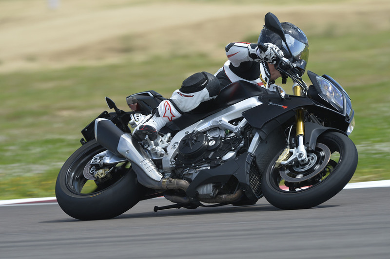 Fuori città e percorrendo strade più adatte ad assaporare il piacere della guida, la Tuono diventa fonte di piacere infinito. È la più pesante del gruppo, 213,5 kg ma questo non va a discapito della precisione ciclistica, e le doti di erogazione ai medi del suo propulsore, oltre che il sound in piena accelerazione, ne fanno un oggetto di grandissimo pregio. Un avantreno così granitico e preciso le altre due contendenti se lo sognano, mentre nel misto emergono anche le grandissime doti di agilità e il perfetto inserimento del pilota sulla moto. Quelli che nella guida in città o nell'extraurbano a passeggio, potevano risultare dei difetti, vedi pedane alte e busto caricato in avanti, nella guida sportiva esaltano le caratteristiche dinamiche della Tuono V4 R. Inoltre il pacchetto elettronico della naked di Noale a distanza di anni ė ancora il più completo ma soprattutto il più funzionale della categoria. La possibilità di intervenire in tempo reale sulle regolazioni del controllo di trazione e delle mappe motore, oltre che sulle modalitá di intervento dell'ABS, permettono di cucirsi su misura la dinamica di guida. Il controllo di trazione e l'anti wheeling, sono lo stato dell'arte nel loro genere, e permettono un controllo assoluto, senza andare a disturbare l’aspetto ludico della guida con tagli e interventi troppo bruschi e percepibili. Poi, se proprio non se ne può fare a meno, sono entrambi disinseribili.