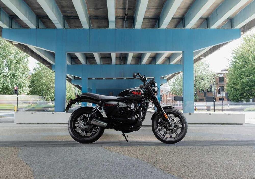 Il compito del centro stile è stato svolto in modo originale senza strafare, il che è un bene. La moto risulta già al primo sguardo molto piacevole e ben proporzionata. Lo stile è modern classic quindi mescola quegli stilemi cari agli amanti delle moto d'un tempo, come sellone piatto, serbatoio a goccia, faro tondo, con elementi più contemporanei senza cadere nei cliché o nel cattivo gusto. Troviamo tutto ciò che è ormai richiesto su una moto moderna: gruppi ottici a led, strumentazione digitale (ma rotonda e abbastanza classicista nel design), naturalmente ABS e iniezione. La piattaforma di partenza è sviluppata da Mahindra e infatti la ritroveremo anche sulla "cugina" Jawa 42 FC se mai verrà importata anche da noi e prevede un monocilindrico interessante di 334 cc con quattro valvole e doppio albero a camme raffreddato a liquido. Questo già è un elemento che la pone in modo alternativo rispetto a quello che offre attualmente il mercato, diviso tra le 350 a due valvole ad aria di Royal Enfield e di Honda e i 400-450 quattro valvole a liquido sempre di Royal Enfield e di Triumph. Con i suoi 29 CV a 7750 giri e 29 Nm a 6000 giri ha i numeri che servono. La trasmissione inoltre prevede un cambio a sei marce.