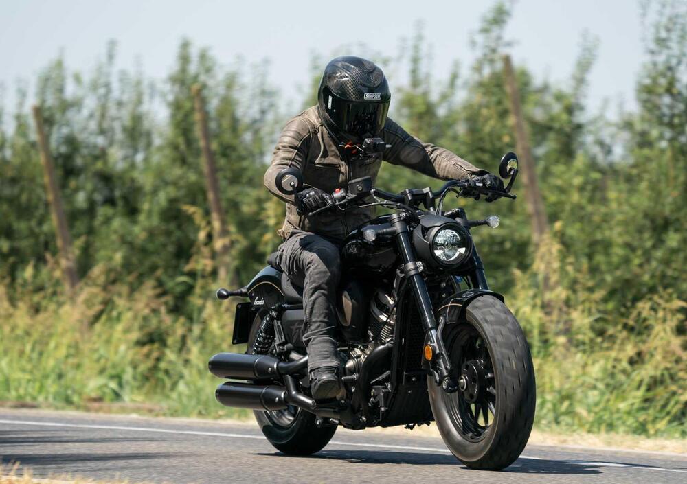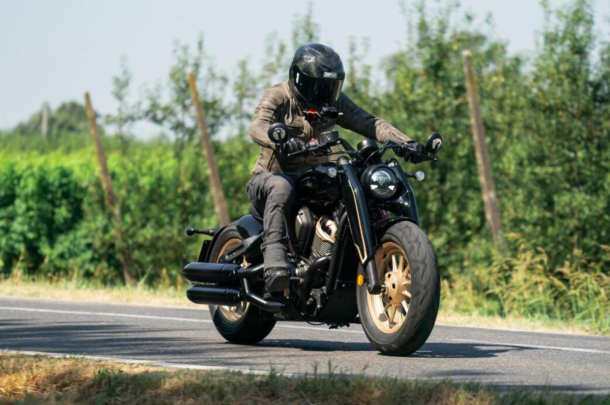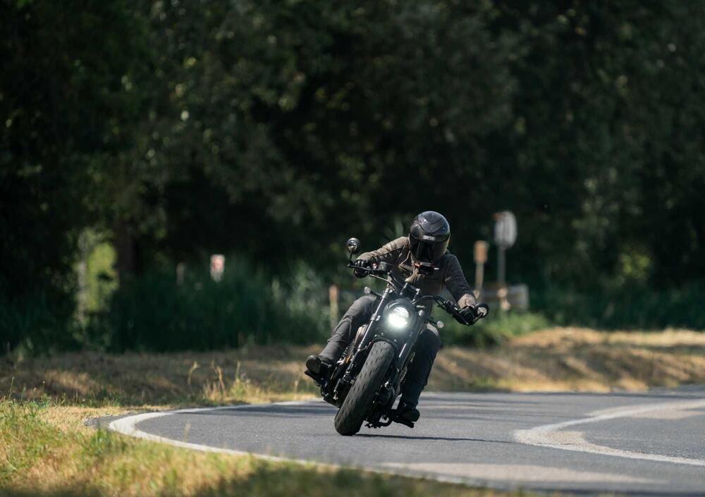 Il comportamento delle sospensioni è equilibrato. La forcella assorbe bene le asperità della strada, risultando morbida, mentre al posteriore gli ammortizzatori sono più sostenuti. Nel complesso la taratura delle sospensioni è adatta per una guida rilassata, ideale per il cruising e le velocità medie. Veniamo sorpresi all'anteriore da una frenata potente grazie al disco da 320 mm, che si rivela invece un poco incisiva al posteriore, al contrario di quanto ci si aspetterebbe su una cruiser. Questo richiede un po' di adattamento, ma nel complesso la modulabilità è buona e il controllo della moto è sempre garantito.