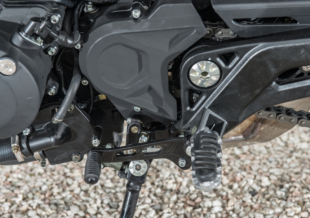 Inoltre, la sella con la seduta a 815 mm da terra, e la sezione snella e rastremata nella zona serbatoio permettono di poggiare i piedi a terra senza sforzo anche ai guidatori meno alti. I comandi non sono assolutamente contrastati, tutto scorre liscio come l’olio, dalla leva del freno (regolabile), a quella della frizione, ma soprattutto quella del cambio a sei rapporti, che pur con una corsa abbastanza lunga, ha innesti precisi e una spaziatura ottimale. Ci siamo permessi di usarlo senza frizione sia in inserimento sia in scalata e non abbiamo percepito il ben che minimo sforzo o rumore anomalo, davvero un bel componente, soprattutto tenendo conto dei chilometraggi piuttosto bassi delle moto protagoniste del test (attorno ai 3/400 chilometri) per cui ancora ampiamente dentro i range di assestamento delle componenti meccaniche.