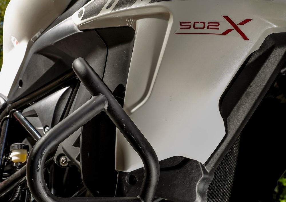 Questa versione “X” tiene quanto di buono abbiamo apprezzato sulla TRK 502, ma si dota di un equipaggiamento tecnico che la rende adatta anche ad un uso più avventuroso e fuoristradistico. Cambia non poco la ciclistica, con la ruota a raggi da 19 pollici anteriore brandita da una forcella - sempre con steli da 50 mm - con escursione maggiorata, così come quella del mono, che guadagna le regolazioni idrauliche della compressione e dell’estensione oltre a quella del precario prevista sulla versione prettamente stradale. Inoltre lo scarico viene spostato in una posizione più protetta in caso di guida su percorsi accidentati, e quindi passa dall’alloggiamento sotto al motore ad uno più conservativo sul lato destro. Anche i pneumatici di primo equipaggiamento, i Metzeler Tourance da 110/80-19 e 150/0-17, pur garantendo ottime prestazioni su asfalto, consentono di guidare in sicurezza pure sullo sterrato.