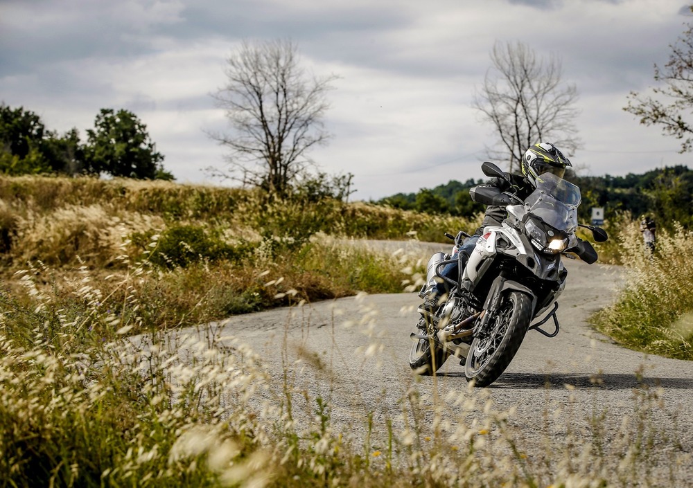 L’abbiamo messa alla prova sugli sterrati collinari nell’entroterra di Pesaro e si è destreggiata ottimamente. Guidata in maniera pulita e rotonda, affronta con disinvoltura qualsiasi terreno, la potenza moderata mette a proprio agio il guidatore che deve fare i conti con eventuali perdite di aderenza solo a comando (nel senso che se le deve cercare!). La moto appare ben bilanciata e l’assetto rimane sempre composto, anche se un pelo sostenuto, con le sospensioni che non vanno in crisi, ma che forse risultano un pelo rigide. Questa caratteristica però, diventa un pregio una volta tornati con i pneumatici sull’asfalto, la TRK 502 X appare a suo agio e si guida con piacere, la si deve accompagnare in ingresso e nei cambi di direzione, anche perché la ruota anteriore da 19 pollici ha di fatto sacrificato un poco della rapidità garantita dal 17 pollici della TRK 502, ma nel complesso appare tutt’altro che pesante e goffa, a dispetto di un peso non proprio modesto. Ottimo il comportamento delle Metzeler Tourance di primo equipaggiamento, pneumatici che troviamo solo su moto di ben altro prezzo, e che rendono merito alla scelta della Benelli di non risparmiare troppo su particolari così determinanti (purtroppo negli ultimi tempi non è difficile provare moto di qualità equipaggiate con pneumatici economici o non proprio recenti in termini di modello e non di fabbricazione). Questi probabilmente aiutano anche l’impianto frenante, che offre prestazioni adeguate e una modulabilità eccellente, senza che l’ABS sia chiamato in causa fastidiosamente anche quando il fondo è sterrato.