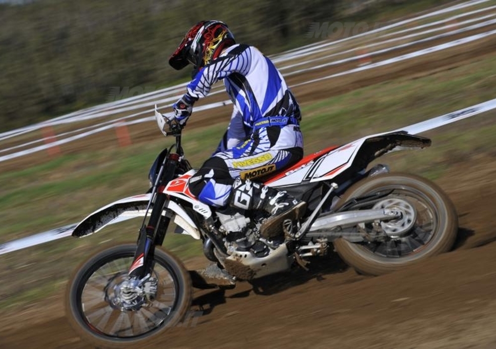 Le nuove quote infatti, trasmettono al pilota una sensazione di grande sicurezza e controllo, specialmente nelle situazioni limite, questo grazie anche all’aumento della rigidità strutturale, alla sua reattività ed alla leggerezza, diventata veramente apprezzabile negli ingressi in curva e nei cambi di direzione improvvisi. L’importante utilizzo del cromo-molibdeno per la struttura principale è stato ampliamente compensato dall’adozione di un telaietto posteriore in materiale plastico strutturale (poliammide caricata). Il nuovo telaietto nasconde inoltre diverse chicche interessanti, tra le quali, le maniglie ergonomiche in fondo alla sella utilissime per l’appiglio in mulattiera; uno scomparto (sotto alla tabella porta numero destra) dedicato al posizionamento di una mini-cassetta degli attrezzi e un innovativo quanto funzionale nuovo sistema di sgancio della sella, grazie al quale, con un semplice tasto, è possibile liberare la sella ed intervenire sulla cassa filtro, posizionata lateralmente, senza la necessità di alcun attrezzo.