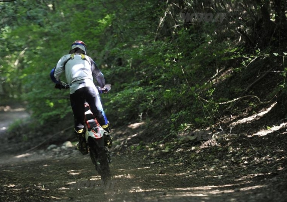 La posizione in sella sulle 2 tempi è un poco più rannicchiata in virtù di un angolo di sterzo leggermente più aperto e quindi il manubrio, anch'esso diverso e con una piega leggermente più bassa, ti fa stare più carico sull’avantreno e vicino alle piastre e ciò comporta, in particolar modo per le persone alte, una seduta in sella un pochino arretrata rispetto all’asse verticale delle pedane, ma questo non toglie che gli inserimenti in curva siano molto efficaci.