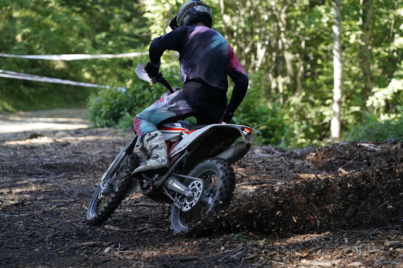 Il 430 è da sempre la moto della gamma più specifica per le competizioni anche se l’enduro moderno, per come si sta evolvendo, potrebbe nel breve termine portare alla ribalta anche la sorella minore. La presenza importante della coppia del motore e la stabilità sul veloce è sempre una caratteristica vincente di questo modello, ma per il 2020 si aggiunge la maneggevolezza che prima le mancava e questo ti trasmette grande fiducia e sicurezza. Le marce lunghe e la mappatura rain permettono di pennellare le curve in fettucciato come se avessimo in mano il compasso e questa linearità di erogazione si traduce in una guida poco faticosa e soprattutto efficace.