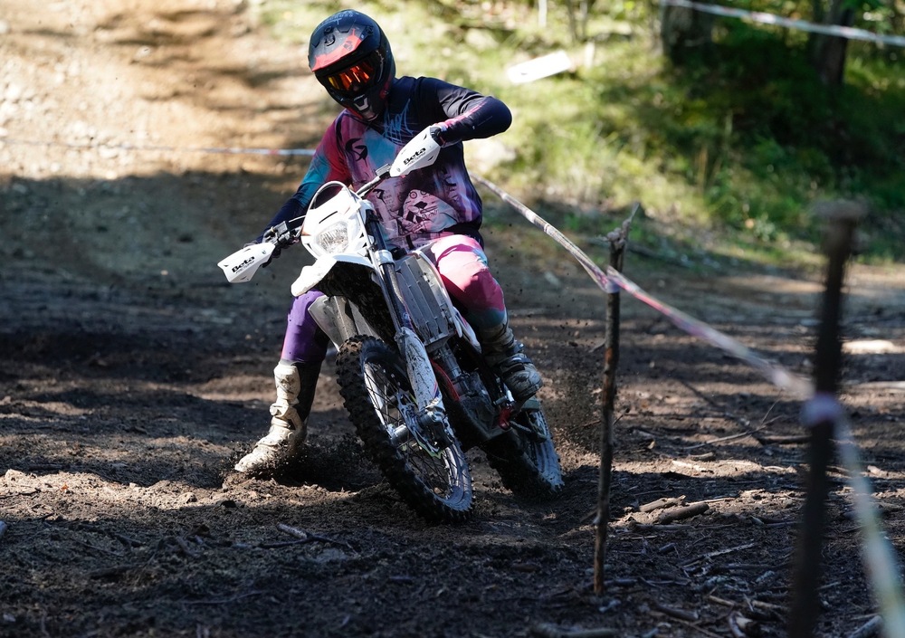 Il 125 è per me una moto tutta nuova, in quanto non ho mai avuto occasione di provarla nelle passate presentazioni. Sarà per nostalgia, sarà per le sensazioni, a me l’ottavo di litro piace da impazzire. L’interpretazione di questa cilindrata da parte di Beta è azzeccatissima, con un buon tiro motore nella prima parte ed un ottimo allungo che ti permette di farla suonare e rimbalzare per gli appoggi. Maneggevole, precisa e con un carattere bello vivace, la piccola 125 beneficia egregiamente di tutti gli upgrade della versione racing ed è ottima per chi si vuol divertire anche se non in età giovanissima.