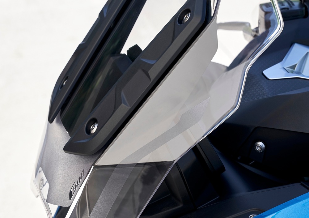 Per chi usa lo scooter tutto l’anno per lavoro o per andare a lavorare, e si muove sia nel traffico sia su strade extraurbane, questi sono davvero dei must. Visto il caldo che fa, non critichiamo la protezione solo discreta, del parabrezza standard (fisso), spalle e parte del casco sono poco protetti, e se in estate la cosa non desta preoccupazione, in inverno o quando piove, meglio dotare il C 400 X del parabrezza maggiorato optional. Girando su strade collinari e fermandoci di tanto in tanto per qualche scatto fotografico notiamo una scomodità che si trasforma immediatamente in lacuna, manca il freno di stazionamento! Una sosta o un parcheggio in salita o in discesa senza la possibilità di inserire una marcia e … il fastidio monta.