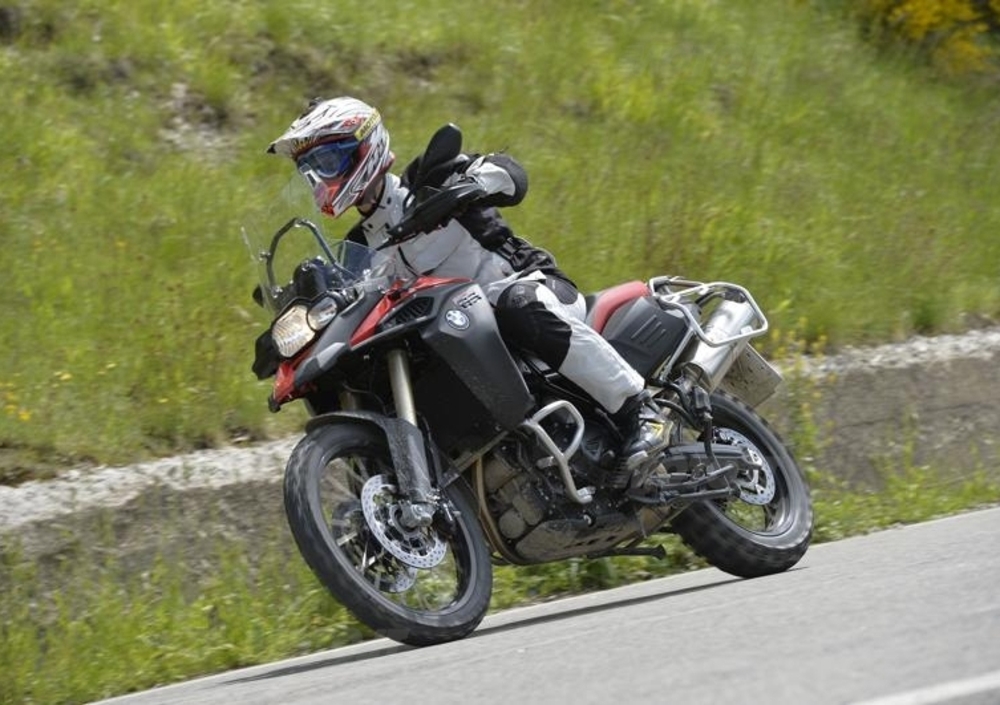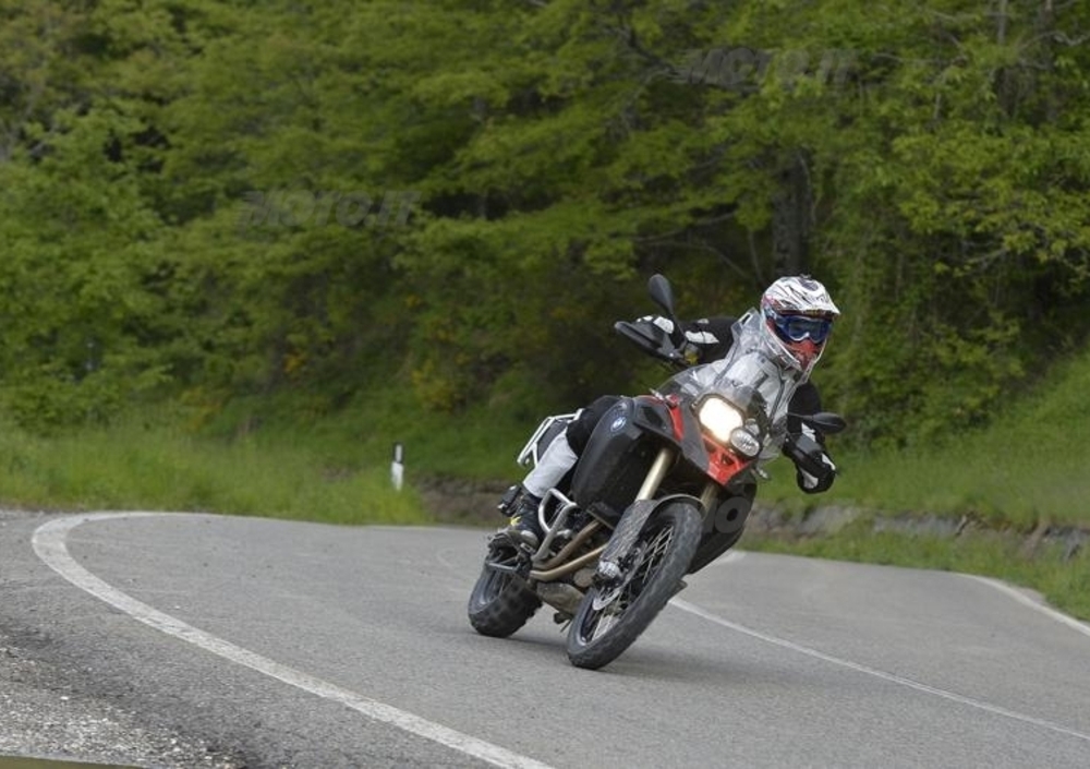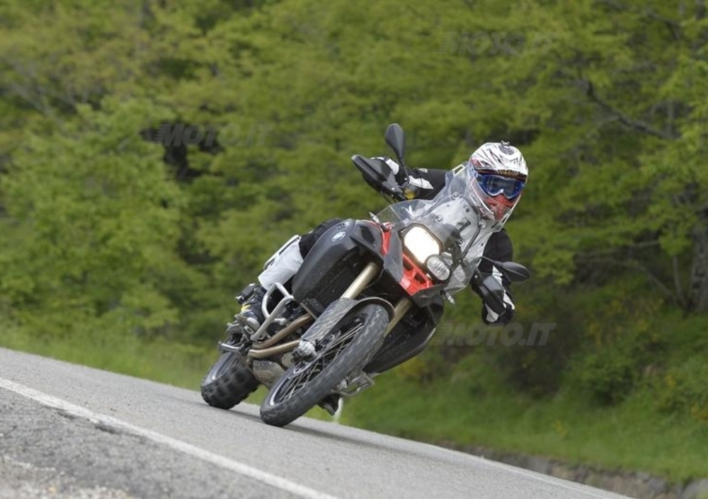 consentono, allo stesso tempo, una buona protezione al basamento, ma nella parte anteriore sono un poco troppo ingombranti e interferiscono con la posizione del piede durante le curve in fuoristrada. La frenata è potente e ben modulabile, anche se l’ABS interviene in maniera fin troppo precoce, allungando notevolmente gli spazi di frenata. Sui tratti di strada buoni e in città è sicuramente un elemento di supporto, ma sui percorsi accidentati offroad è opportuno disinserirlo. Le moto del test erano equipaggiate con le Metzeler Karoo (alcune 2 e alcune 3) che ne hanno certamente esaltato le doti fuoristradistiche. Il posteriore infatti, grazie anche al peso del serbatoio (sotto alla sella) è sempre molto carico e ben piantato e si arrampica dappertutto. Di contro la gomma tassellata rende gli inserimenti su asfalto un po’ più ballerini e meno precisi.