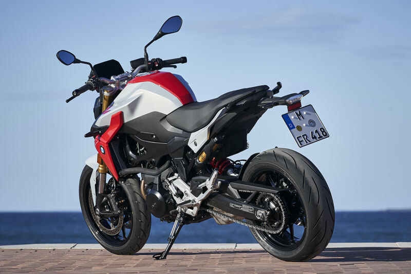 La BMW F900R debutta in concessionaria in questi giorni con tre proposte cromatiche. La Blackstorm metallic è quella da considerarsi di serie, mentre con la San Marino Blau metallic (con cerchi midnight black) fa lievitare il prezzo di 120 euro. La Hockenheim Silver metallic/Racing Red fa parte dello Sport Style, che ai cerchi in midnight black aggiunge gli steli forcella anodizzati oro per un sovrapprezzo di 220 euro.