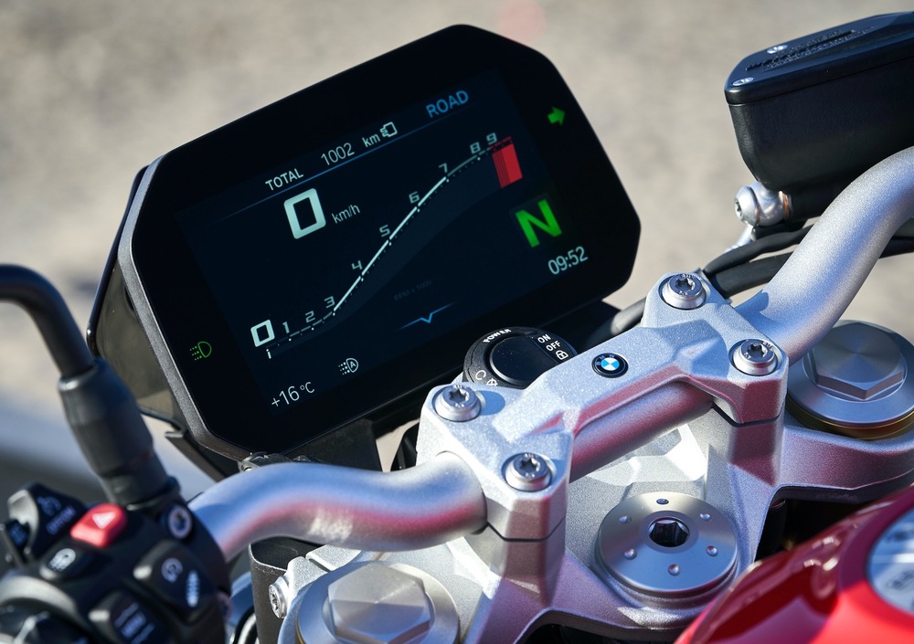 Anche a livello di dotazione la F900R si allinea ai top di gamma BMW, con il cruscotto TFT a colori da 6,5”, comandi e colpo d’occhio dal posto di guida virtualmente identici a quelli delle boxer 1250. Insomma, una proposta decisamente più adulta e allineata alle parenti più giovani nella gamma di Monaco.