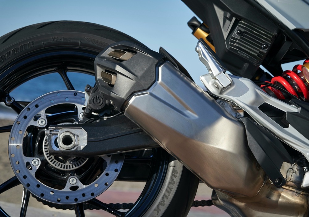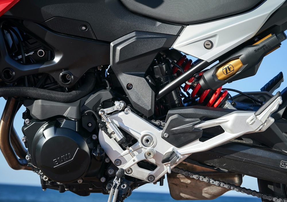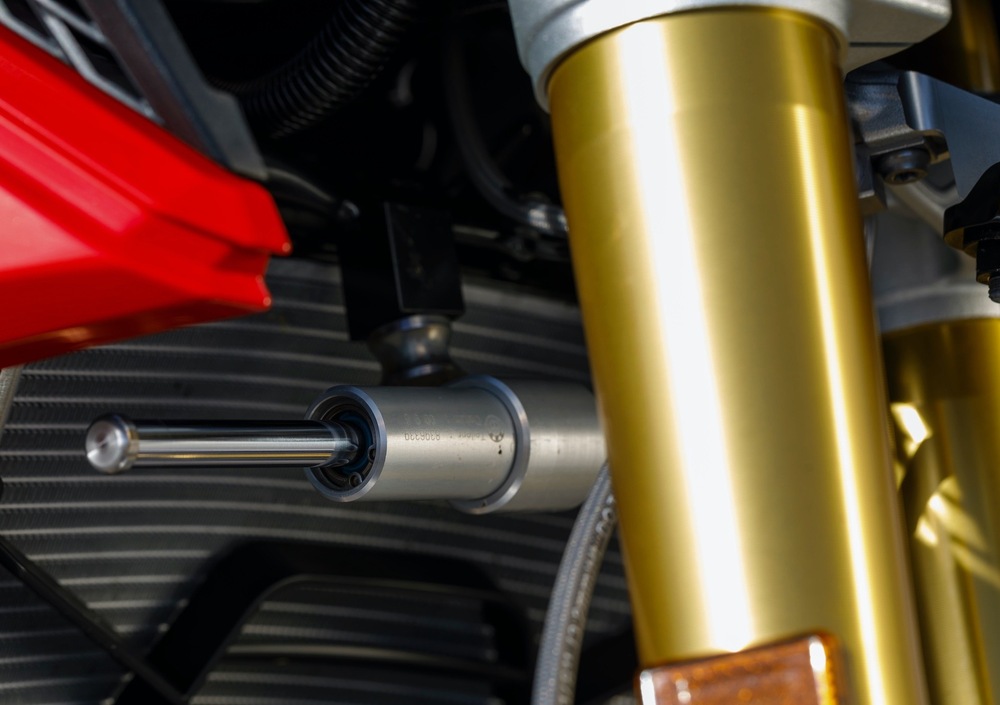Le vibrazioni vengono ridotte grazie a due contralberi contrapposti; al capitolo trasmissione troviamo cambio a sei rapporti (con Shift Assist Pro optional) e frizione antisaltellamento in bagno d’olio, assistita dal sistema di controllo elettronico MSR e (potenzialmente) del controllo dinamico del freno motore DBC optional.