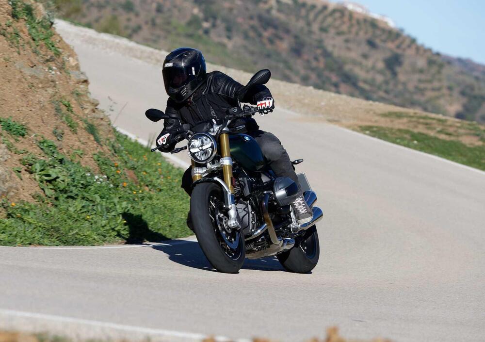 Nella guida dinamica la R 12 nineT ci asseconda, non disdegna assolutamente le pieghe, anzi... La ciclistica risponde ai comandi del pilota e consente una guida anche più "sportiveggiante" grazie al set delle sospensioni (completamente regolabili) tarate tendenti al sostenuto.