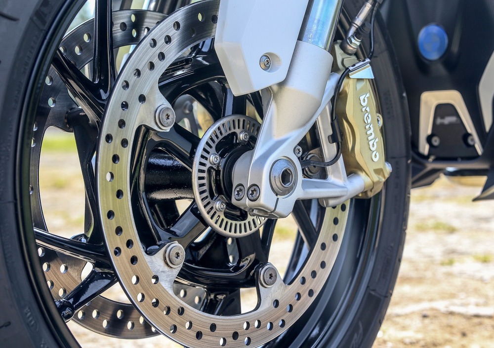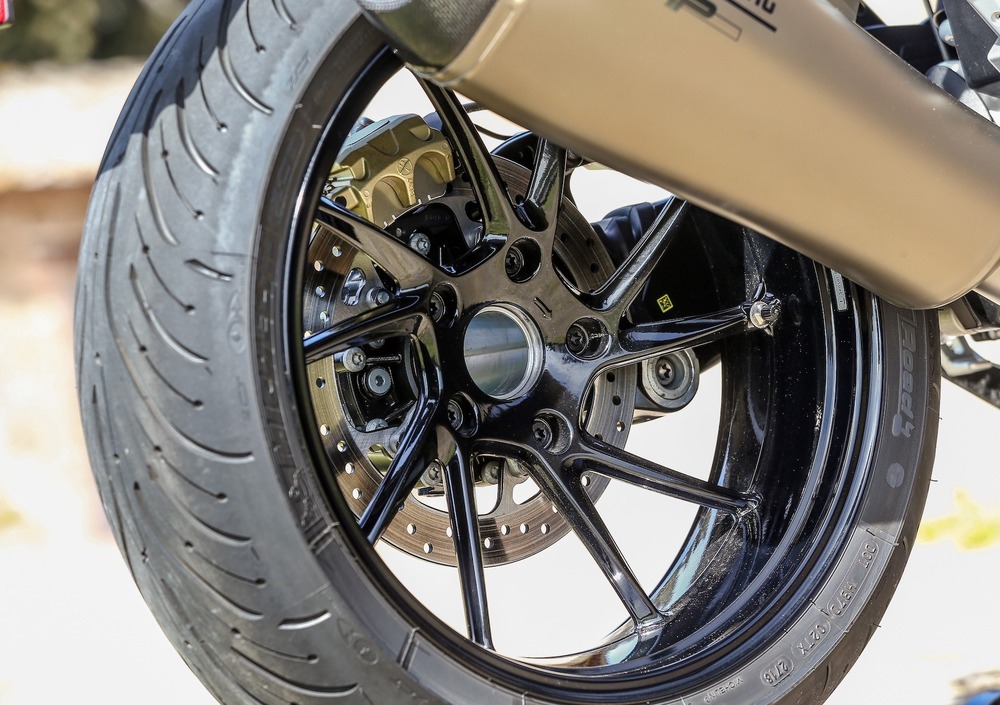 Capitolo… ruote: la coppia di cerchi da 17” calza pneumatici Michelin Pilot Road nelle misure 120/70 all’avantreno e 180/55 al retrotreno, con impianto frenante Brembo (gestito naturalmente dal già citato ABS, eventualmente con funzione Pro) composto da due dischi da 320mm all’anteriore e un disco singolo da 276mm.